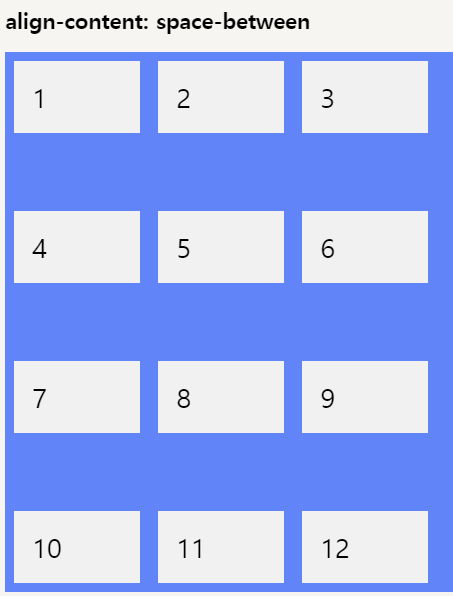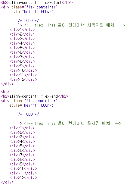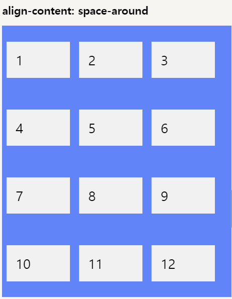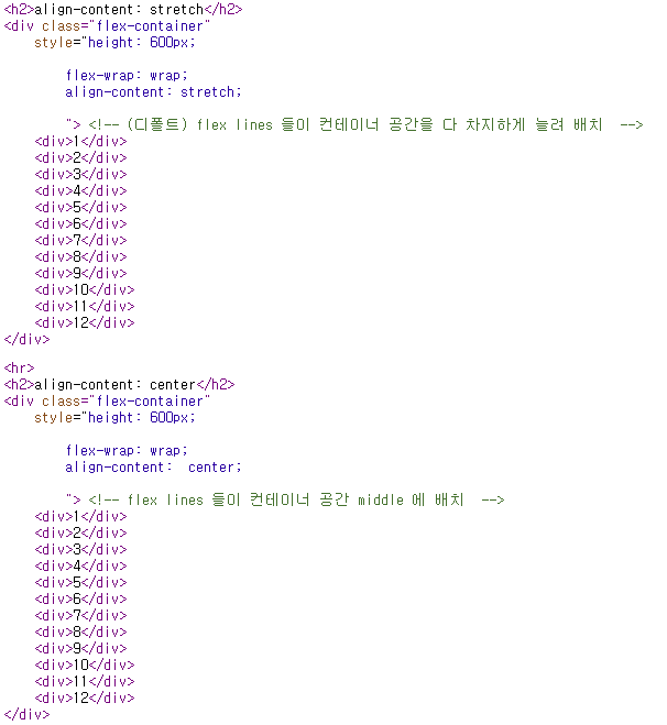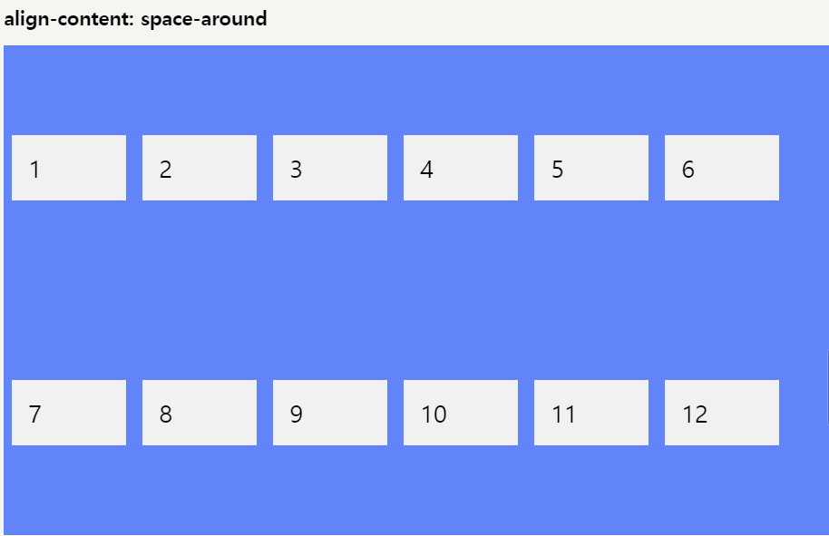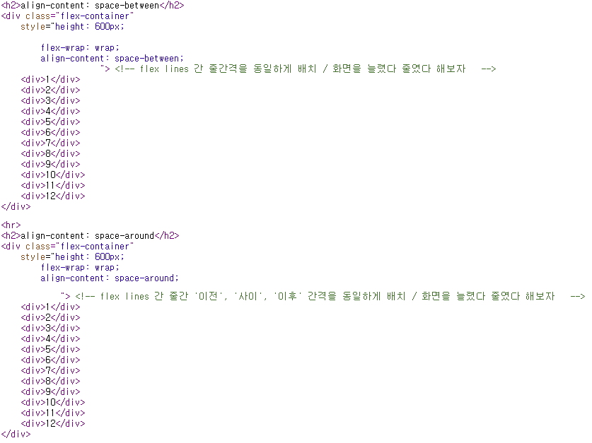 > space-between, space-around, stretch(디폴트), center, flex-start, flex-end