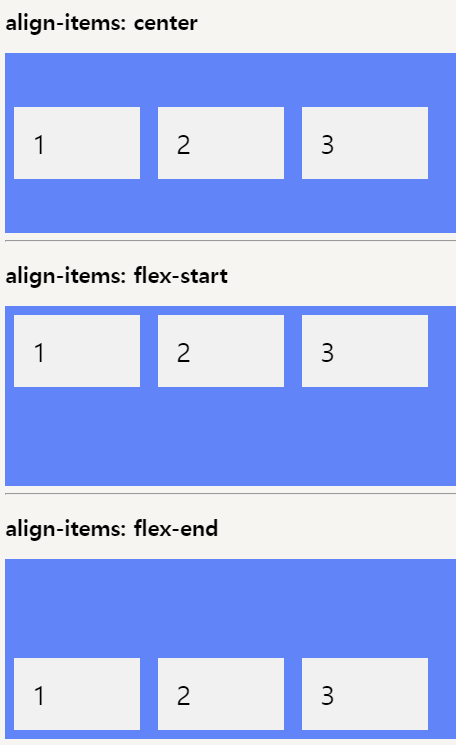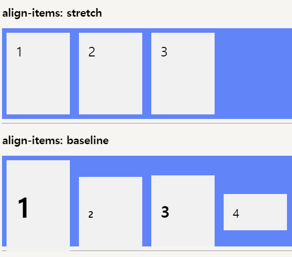 > center flex-start, flex-end, stretch(디폴트), baseline