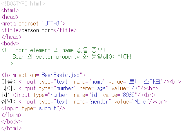 <%-- form 에서 넘어온 값을 bean 객체가 바로 받을수 있다