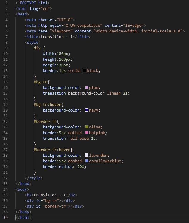 - property : 요소에 추가할 전환효과를 설정