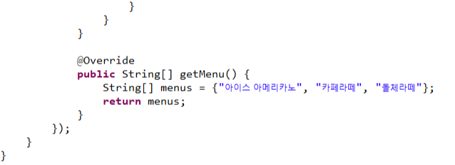 - 인터페이스를 직접 지정하지 않고 다른 클래스에 지정한 후 바디({})를 만들어 놓는다면,