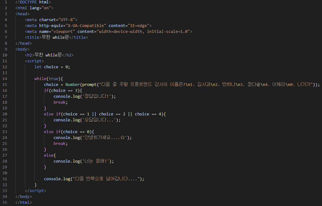- 안에서 특정한 조건일 때 if문 안의 break를 통한 탈출구 하나 이상을 만들어 주어야 한다.