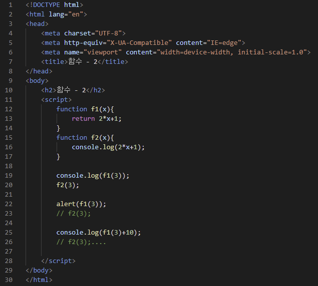 - 함수는 필요할 때마다 호출하여 해당 작업을 반복해서 수행하기 때문에 코드의 재활용을 가능하게 해준다.