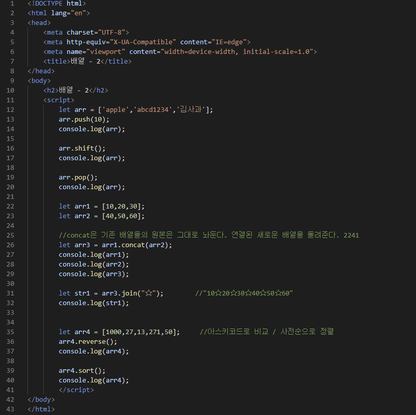 배열명.pop() : 배열의 마지막에 있는 값을 제거