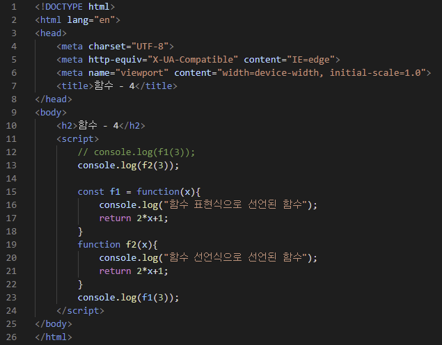 - 자바스크립트는 script 태그를 만나면 자바스크립트를 읽고 선언된 함수를 먼저 메모리에 저장한다.