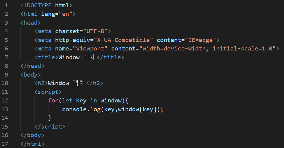 현재 웹 브라우저의 창이나 탭을 표현하기 위한 객체
