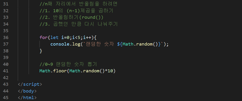 random() 0보다 크거나 같고 1보다 작은 무작위 실수를 반환