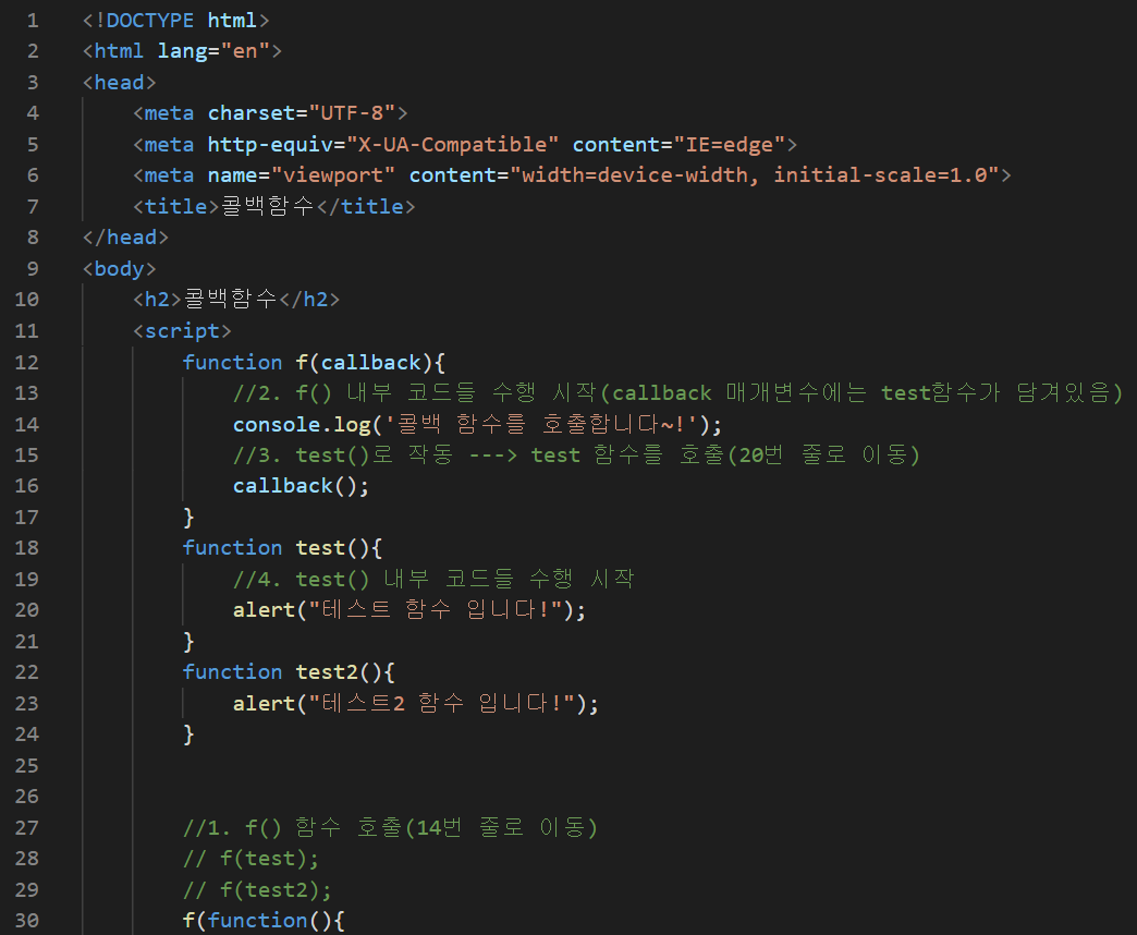매개변수로 함수를 전달받아 함수 내부에서 그 함수를 호출하는 경우