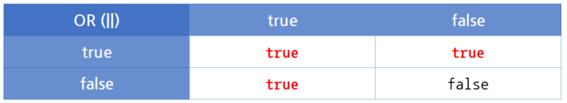 -> "||"연산자는 두개의 boolean값을 비교하여 둘 중 하나라도 true인 경우 결과값이 true이다.