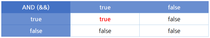 -> "&&"연산자는 두개의 boolean값을 비교하여 모두 true인 경우만 결과값이 true이다.