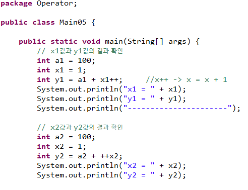-> 증감 연산자가 뒤에 표시되는 경우, 현재 x의 값을 1증가시킨 후, 그 결과를 수식에 적용한다.