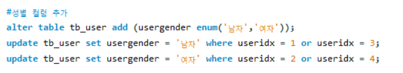 update 테이블명 set 컬럼명 = 새로운값 where 조건절;