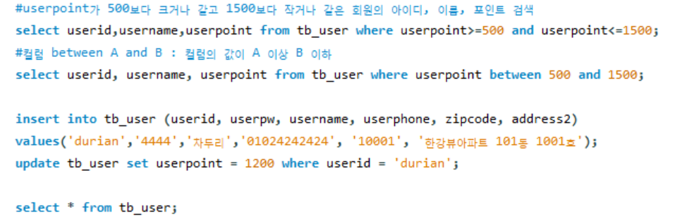 select 컬럼1, 컬럼2, ... from 테이블명 where 조건절;