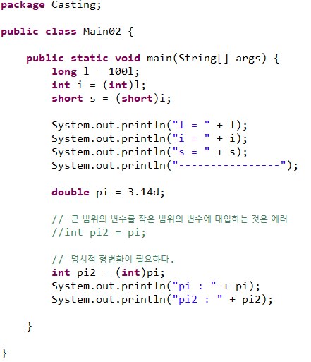 - 데이터 손실을 감수하더라도, 강제로 형변환시키는 형태