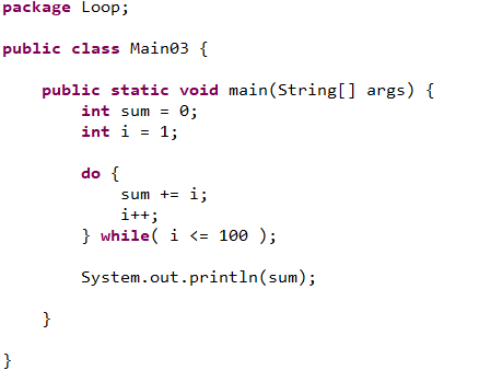 - 초기식을 설정한 후 do{...}안의 문장을 우선적으로 1회 실행하고 조건을 판별하므로, 조건이 참이 아니더라도 최소 1회는 실행된다.