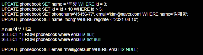 UPDATE [테이블이름] SET [컬럼이름] = [데이터], ...