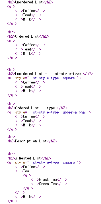 * 오늘날 웹에서 li, ol 은 메뉴 작성에도 많이 사용됨.