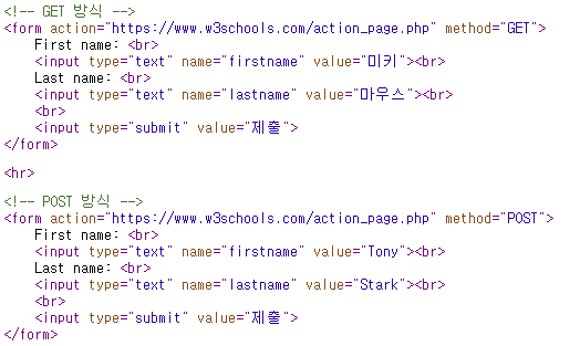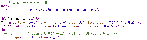 이때 전달되는(받는) 곳은 서버의 특정 페이지가 되며, 이렇게 전달하는 것을 'submit' 한다고 합니다
