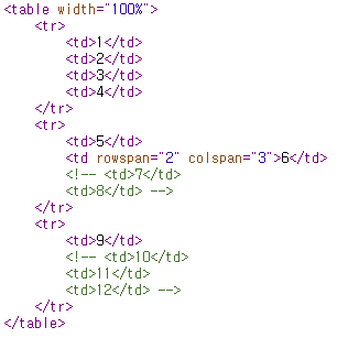 HTML 문서에 '표' 를 나타내기 위한 태그로 <table> 제공. 다음 태그들과 같이 사용된다.