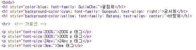 HTML에서 style 속성의 속성값에는 CSS (Cascading Style Sheet) 스타일 구문이 들어갑니다.