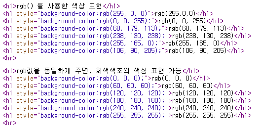 HTML 에서 색상값 지정하는 방법