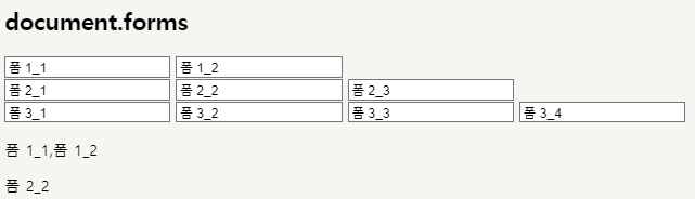 * document.forms : document 의 모든 <form> element들