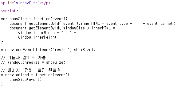 * window object 에 event handler 추가