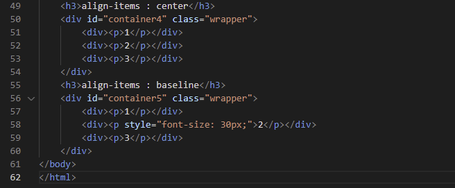 baseline : 플렉스 요소는 플렉스 컨테이너의 기준선에 배치된다.