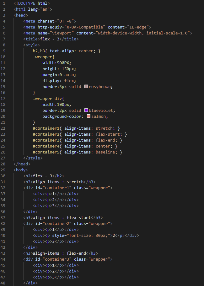 플렉스 요소마다 서로 다른 align 속성값을 설정할 수 있다.
