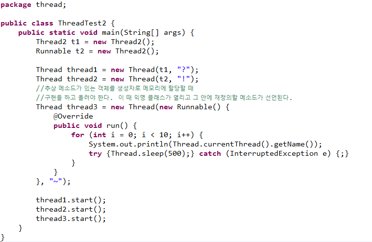 package명은 threadTest로 만들고 클래스는 2개만 선언한다.