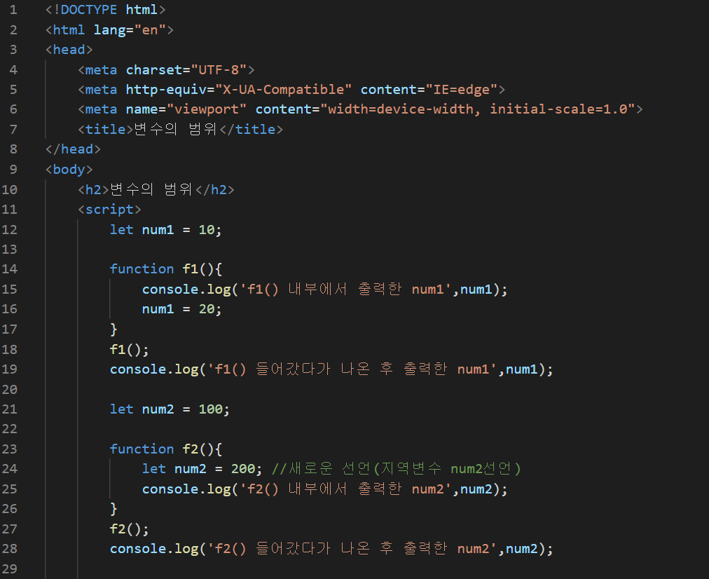 - 전역 변수는 프로그램의 어느 영역에서나 접근할 수 있으며 웹 페이지가 닫혀야만 메모리에서 사라진다.