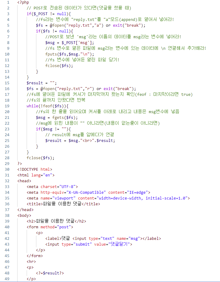- echo 함수를 사용할 필요가 없으며, 텍스트를 표시할 위치에 사용하면 읽어온 내용을 그대로 출력
