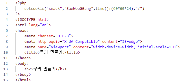setcookie(쿠키이름,값,만료시간,저장위치,도메인정보,프로토콜);